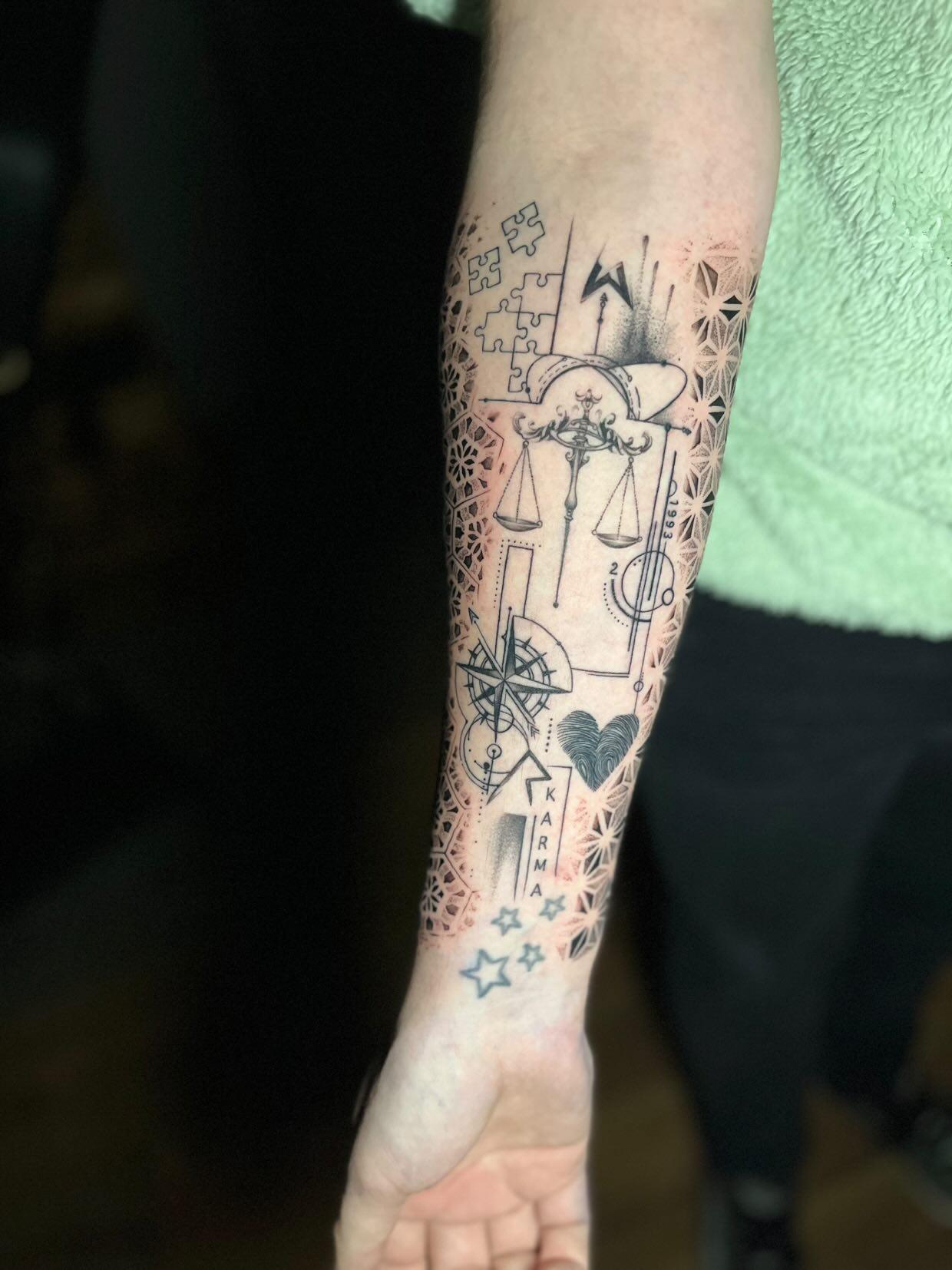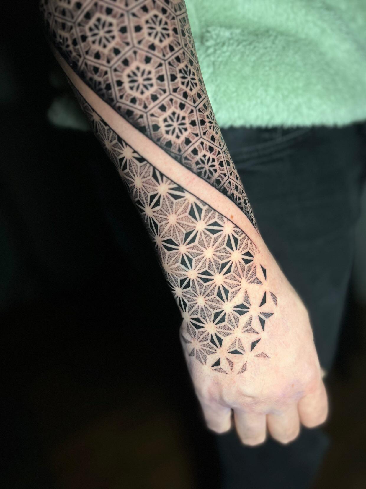 Ich liebe Linien- und Dot-Work Tattoos und stecke mein ganzes Herzblut hinein! Genauigkeit und Symmetrie sind mir beim Erstellen eines Musters sehr wichtig.
